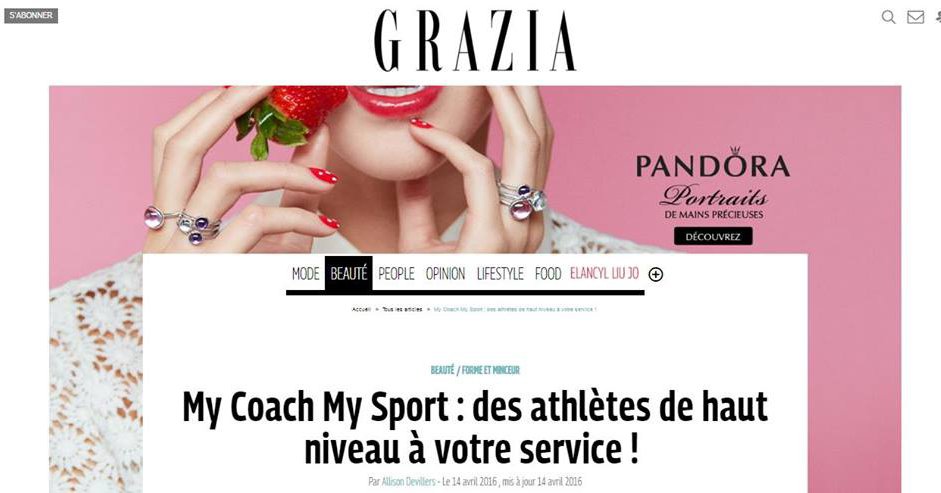 Grazia.fr rédigeait un article sur le coaching sportif particulier, en recommandant les coachs MyCoachMySport